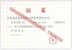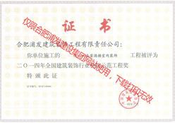2013全國建筑裝飾行業(yè)科技示范工程獎(池州金融大廈外幕墻裝飾)