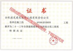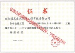 2013池州九華全國建筑裝飾行業(yè)科技示范工程獎
